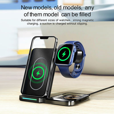Il nostro caricabatterie wireless 3 in 1 è compatibile con una varietà di dispositivi, tra cui smartphone, smartwatch e auricolari wireless.puoi caricare i tuoi dispositivi in modo rapido ed efficiente.