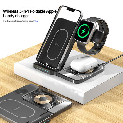 Caricabatterie wireless 3 in 1 con frequenza di ricarica 110-205KHz 1m cavo 5W/7.5W/10W/15W uscita