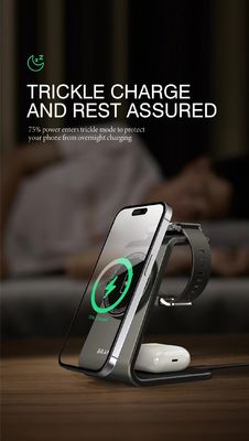 Con il caricabatterie wireless 3 in 1 non dovete più preoccuparvi dei cavi incastrati o della mancanza di batteria in viaggio.Mettete le mani sul caricabatterie 3 in 1 oggi e provate la comodità della ricarica wireless!