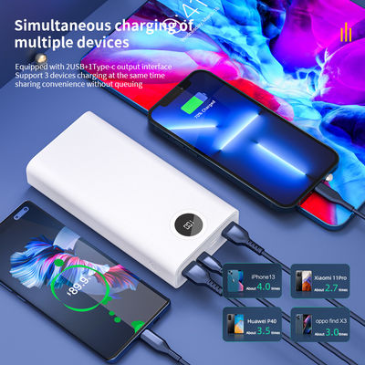 Banca di potenza in polimero di litio di grande capacità Bianco nero con uscita PD22.5W e indicatore LED